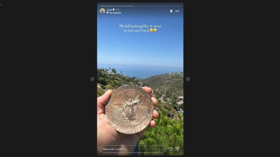 "Essa medalha parece que foi para a guerra e voltou", escreveu, com emojis de risada (veja na foto abaixo).
