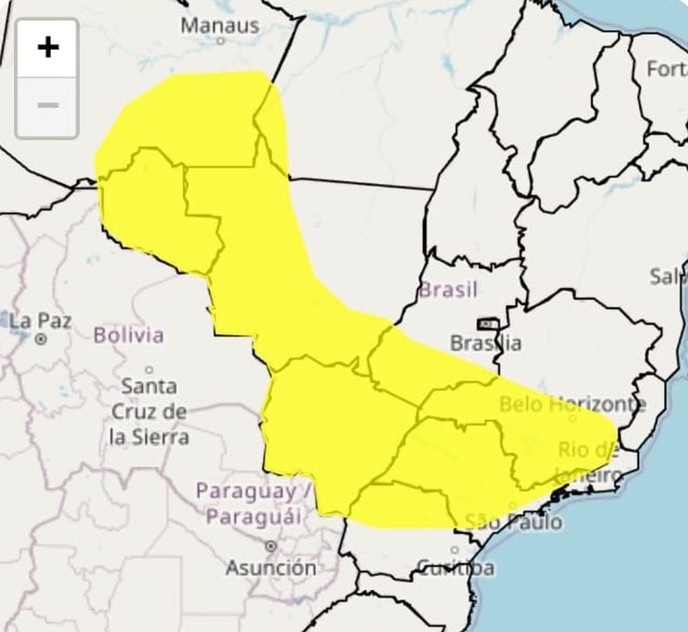 De acordo com o Instituto Nacional de Meteorologia (Inmet), a região Sudeste e parte do Centro-Oeste devem ser os locais mais afetados.